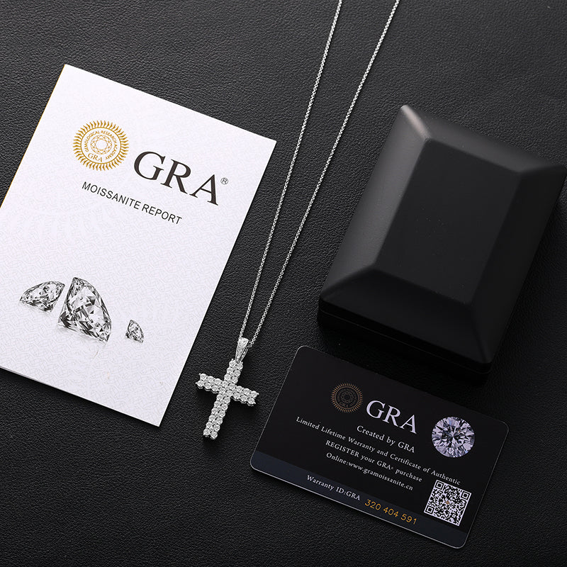 925 Sterling Silver Two Row VVS Moissanite Diamond Cross Pendant Necklace with Chain – Shine bright with this exquisite 925 sterling silver cross pendant featuring two rows of brilliant VVS moissanite diamonds. This elegant pendant comes complete with a matching sterling silver chain, perfect for those who appreciate luxury jewelry and fine craftsmanship.