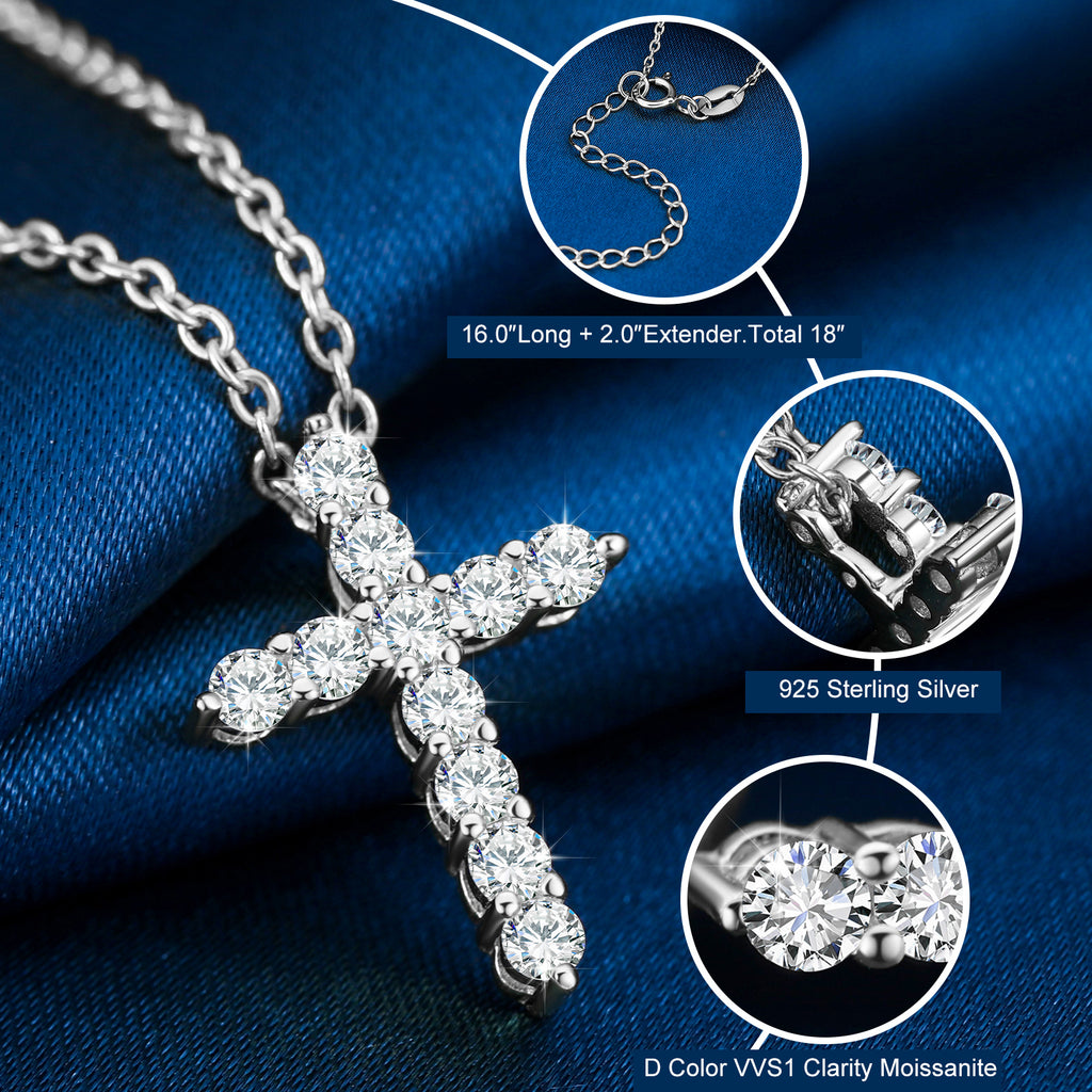 925 Sterling Silver VVS Moissanite Diamond Cross Pendant Necklace